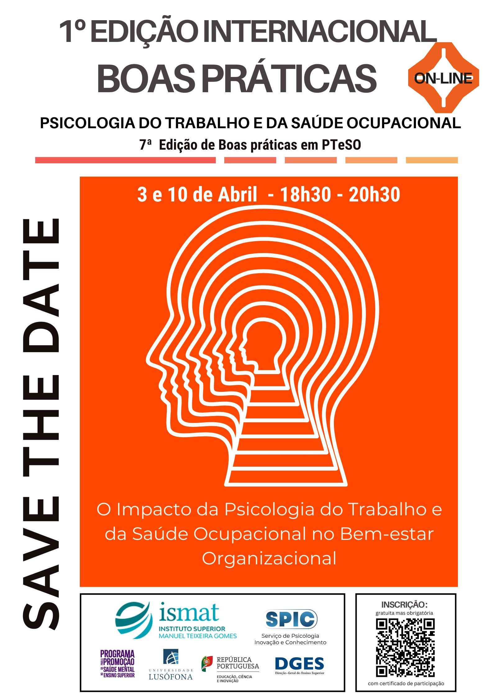 The coordination of the Master’s Degree in Work and Occupational Health Psychology is organising the 7th Edition/1st International Edition of Best Practices in Work and Occupational Health Psychology: The Impact of Work and Occupational Health Psychology on Organisational Well-being – Mental Health Matters in the Workplace. Best practices from Portugal, Cape Verde, Brazil, and Spain will be presented.