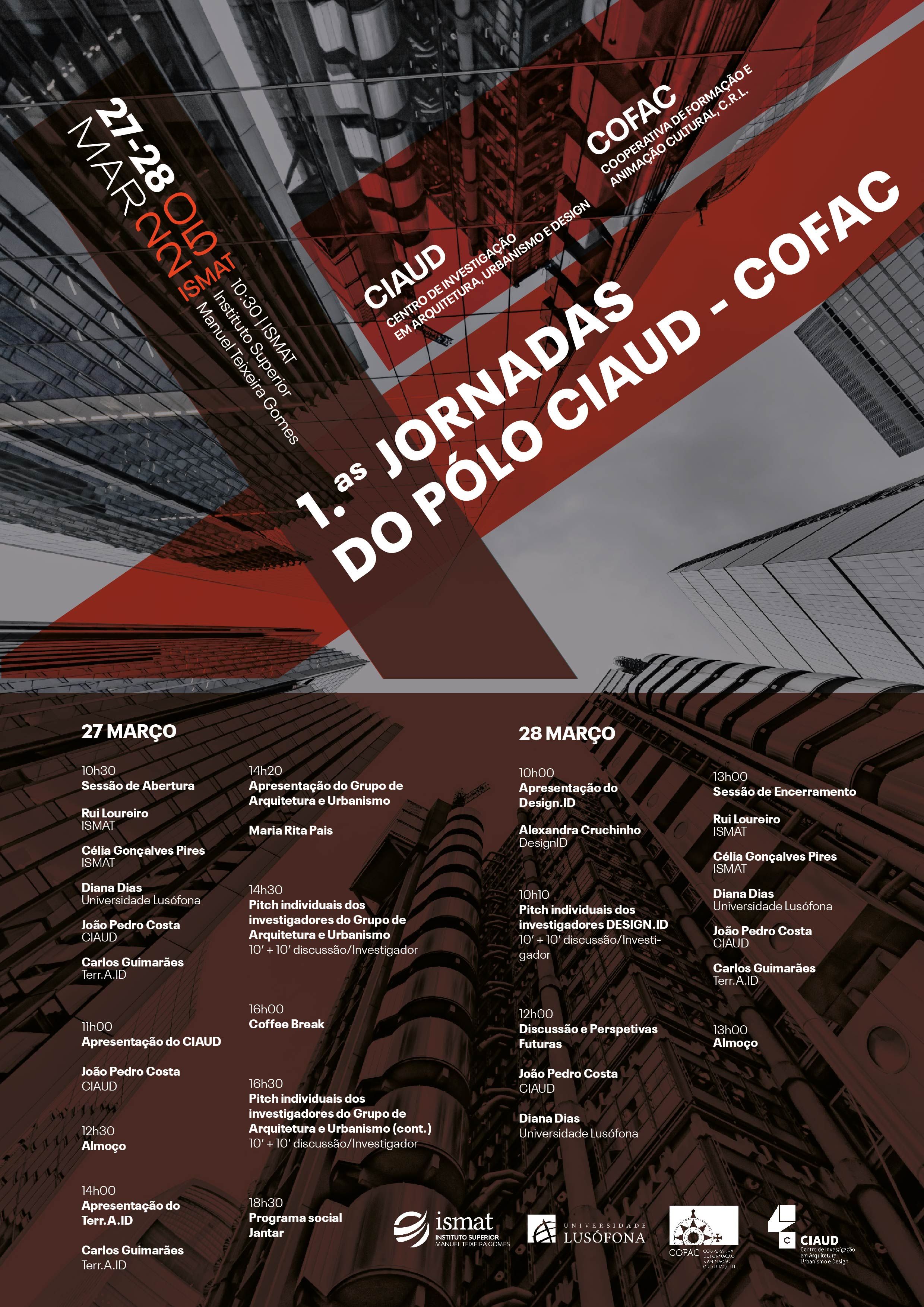 The 1st CIAUD (Centre for Research in Architecture, Urbanism, and Design at the University of Lisbon) / COFAC (Cooperative for Training and Cultural Animation) Conference will take place on the 27th and 28th of March 2025 at the Instituto Superior Manuel Teixeira Gomes (ISMAT) in Portimão. This event aims to create a space for reflection, knowledge exchange, and sharing of best practices among researchers, professionals, and academics in the fields of architecture, urbanism, and design. Through the presentation of innovative projects and the discussion of current themes, the event seeks to promote inter-institutional collaboration and the development of solutions for emerging challenges in these disciplines.