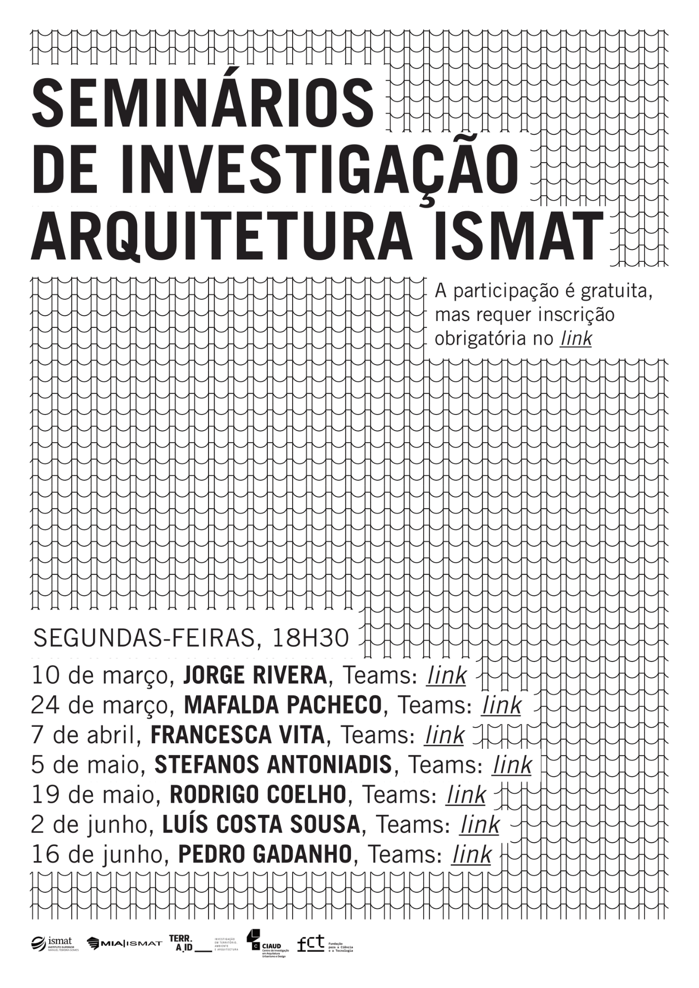As part of Seminar II, ISMAT's Architecture course proposes seven research seminars with the participation of guests from other higher education institutions / research centres.