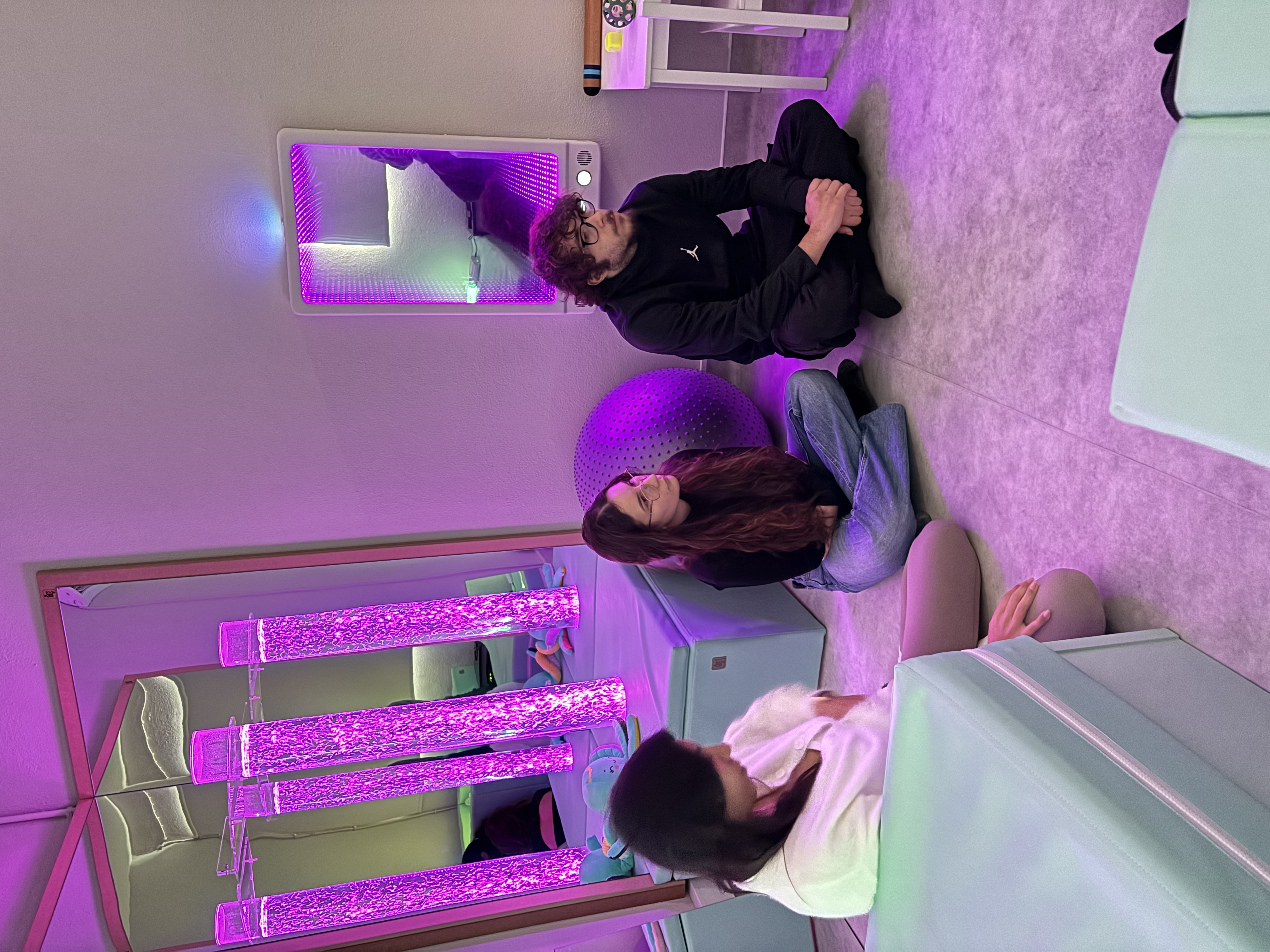Psychology students visited the Snoezelen Room (Teia D'Impulsos) with Prof. Raíssa Santos, exploring interventions in developmental psychopathology to end the semester.