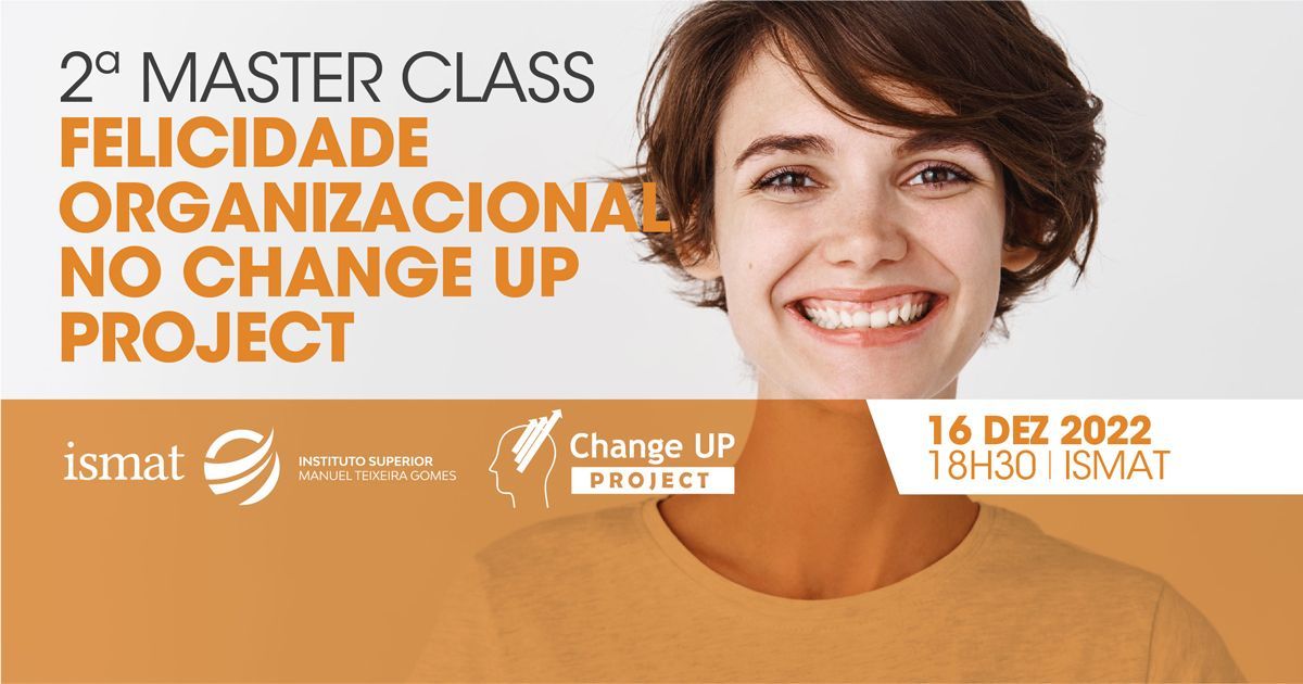 No âmbito da 4.ª edição do Change Up Project, um projecto na área da gestão, implementado pelas docentes Patricia Araujo & Ligia Nascimento, a 2.ª Master Class sobre Felicidade Organizacional é este ano implementada na unidade curricular com o mesmo nome, pertencente a Licenciatura em Gestão de Recursos Humanos do ISMAT - Grupo Ensino Lusofona.