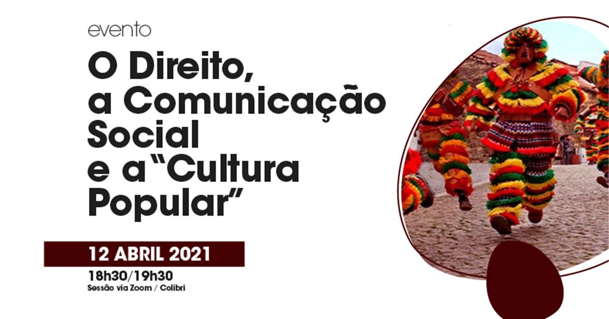 A conferência que aqui divulgamos, co-organizada pelo CEAD juntamente com o Laboratório Lusófono de Direito (IPBeja), tem como objetivo primordial debater "O Direito, a Comunicação social e a “cultura popular”. Serão abordados diferentes temas, com base nas três áreas aqui apresentadas.