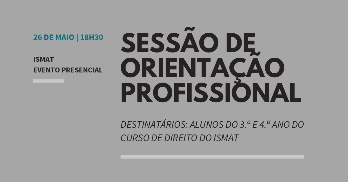 Sessão de Orientação Profissional destinada aos estudantes do 3.º e 4.º Ano da Licenciatura de Direito do ISMAT.
