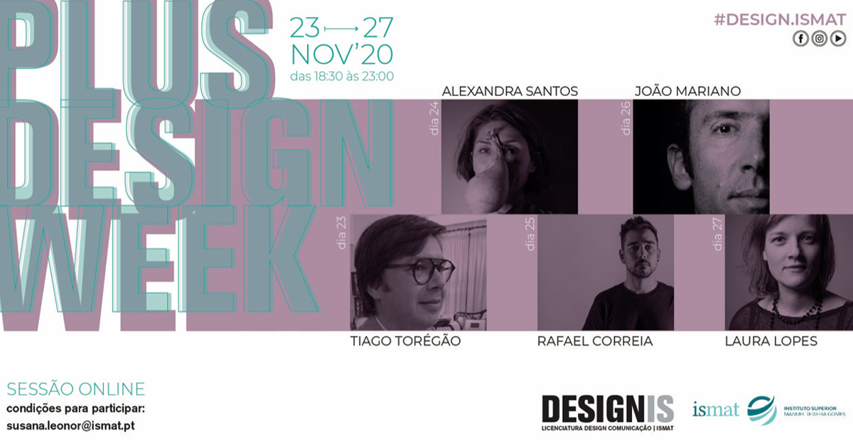 Mais uma edição do PLUS DESIGN WEEK, 20/21 - ONLINE. Esta iniciativa é dirigida aos alunos da Licenciatura de Design de Comunicação do ISMAT