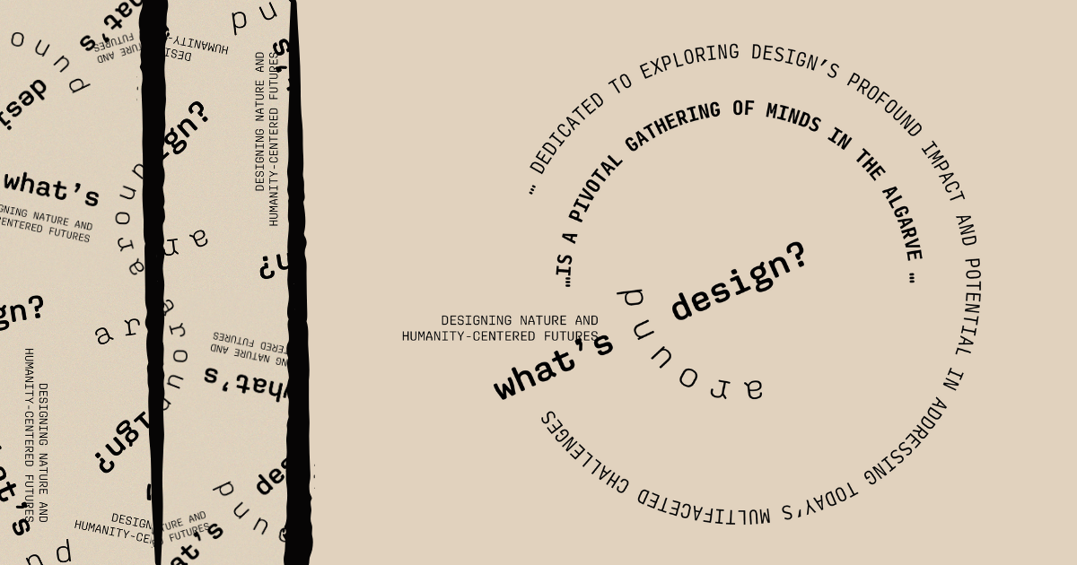 "What's Around Design?" é um encontro de mentes no Algarve dedicado a explorar o profundo impacto e potencial do Design na abordagem dos desafios multifacetados da atualidade. Alterações climáticas extremas, migrações em massa, escassez de habitação, resíduos, poluição, desflorestação - existe uma necessidade premente de promover um repensar dos paradigmas tradicionais do design, visando estratégias para mitigar estes problemas e promover um futuro mais sustentável e equitativo. Abordagens como as soluções baseadas na natureza, a economia circular, o design inspirado na natureza, o design especulativo e a transição verde permitem aos designers antecipar e preparar-se para vários cenários, criando soluções proativas e adaptáveis que se harmonizam com o ambiente.