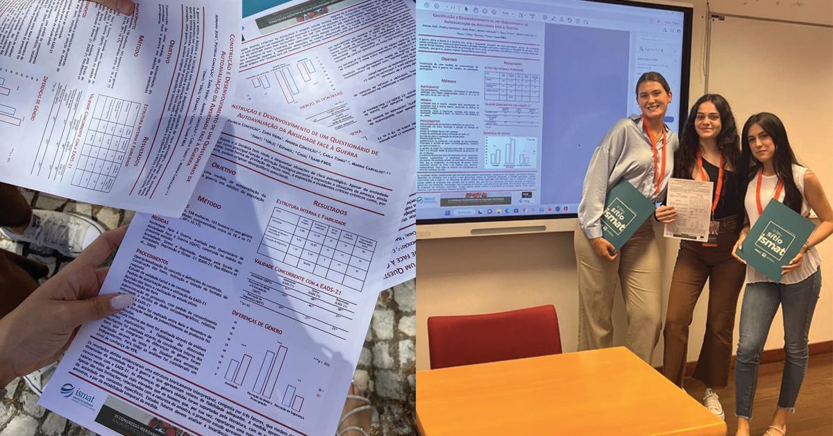 As alunas Adriana José, Patrícia Conceição e Zaira Vieira apresentaram presencialmente um póster, intitulado “Construção e desenvolvimento de um questionário de autoavaliação da ansiedade”.