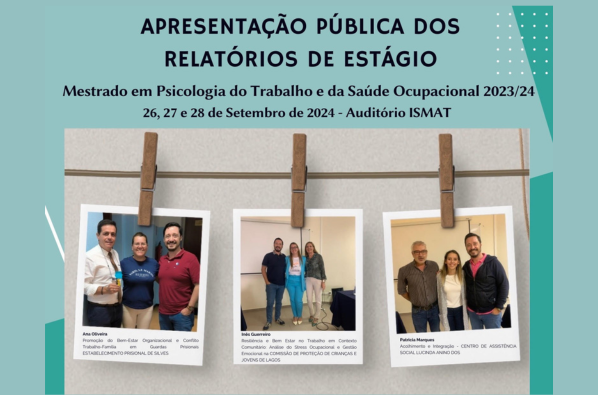 As estudantes do curso de Mestrado em Psicologia do Trabalho e da Saúde Ocupacional apresentaram os seus relatórios de estágios que decorreram no ano letivo de 2023/2024.