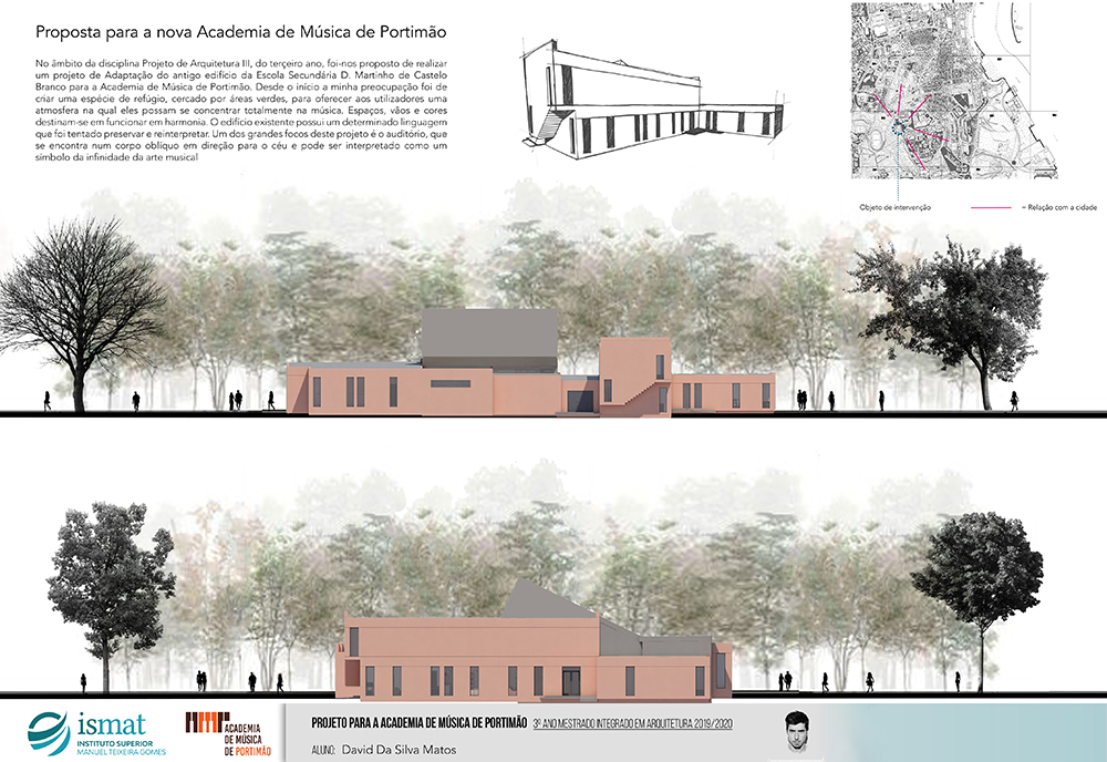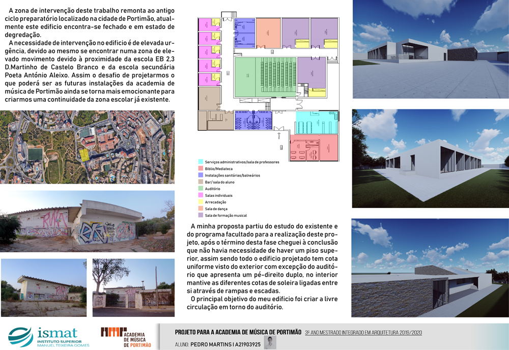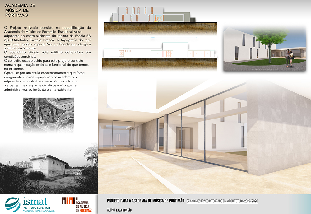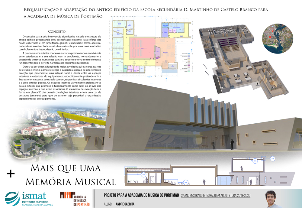 Os alunos do terceiro ano do Mestrado Integrado em Arquitetura convidam todos a passar pela Alameda de Portimão, entre os dias 15 de junho a 15 de julho, para visitar a exposição dos projetos que desenvolveram para as futuras instalações da Academia de Música de Portimão que promove a reabilitação da antiga Escola Secundária D. Martinho de Castelo Branco.