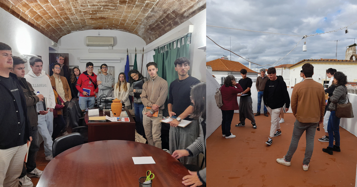 A visita contou com a presença do Arq. Paisagista José Manuel Pires, proprietário da edificação, e da presidente da junta de freguesia Dr.ª Custódia Casanova que proporcionou e acompanhou os alunos numa visita guiada ao núcleo histórico da vila, aos dois monumentos nacionais (Igreja de S. Francisco e Anta de S. Dinis) e Casa Museu Manuel Pinheiro de Pavia.