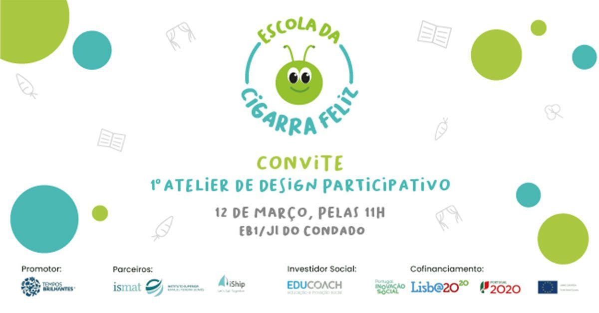 A Unidade de Investigação do ISMAT, o ISHIP, através investigadores Américo Mateus, Susana Leonor e Lucas Pena, docentes do Curso de Design do ISMAT, será responsável pela realização do 1.º Atelier de Design Participativo do Projeto Escola da Cigarra Feliz, que decorre online, no próximo dia 12 de março, pelas 11h. Este projeto teve início em Setembro de 2020 e é realizado em parceria com a Associação Tempos Brilhantes.